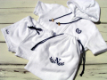純白に紺色の刺繍とゴールドの紐留めがアクセント。