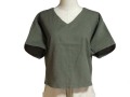 綿麻(ソフトリネンコットンキャンバス)でお作りしました。天然の麻の雰囲気を残しつつ、柔らかな手触りの合わせやすいブラウスです。渋めのカラーは、年齢を問わずおしゃれに着こなしていただけます。